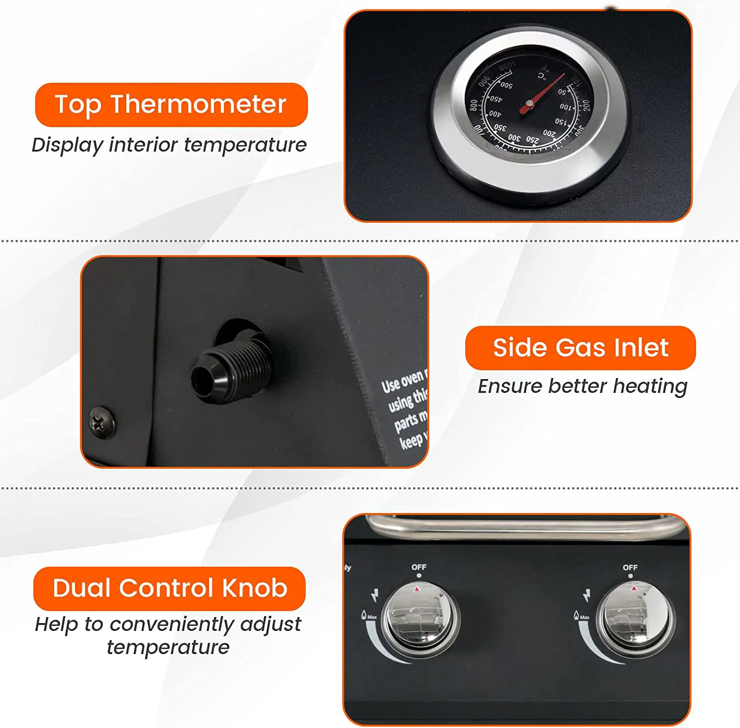 Área de cocina: | 13.4*17.5 pulgadas (34*44.5cm) | Tamaño: | 21.7*18.3*16.1 pulgadas (55*46.5*41cm) |